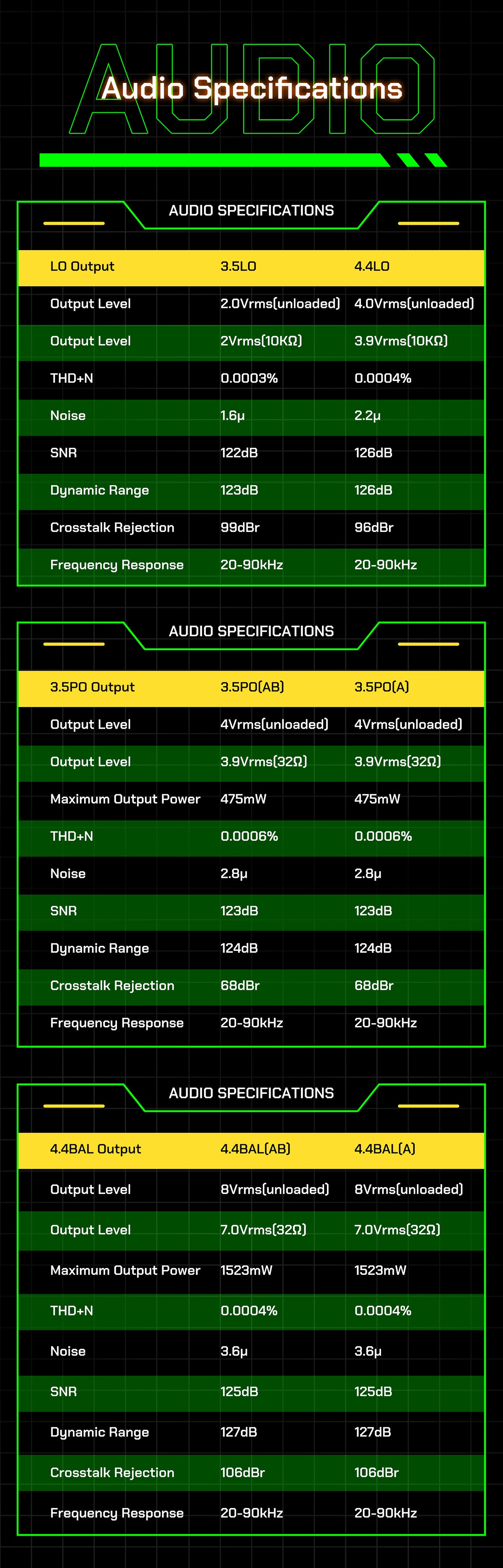 3.5mm TRS and CTIA-spec TRRS compatible SE headphone out,4.4mm balanced headphone out